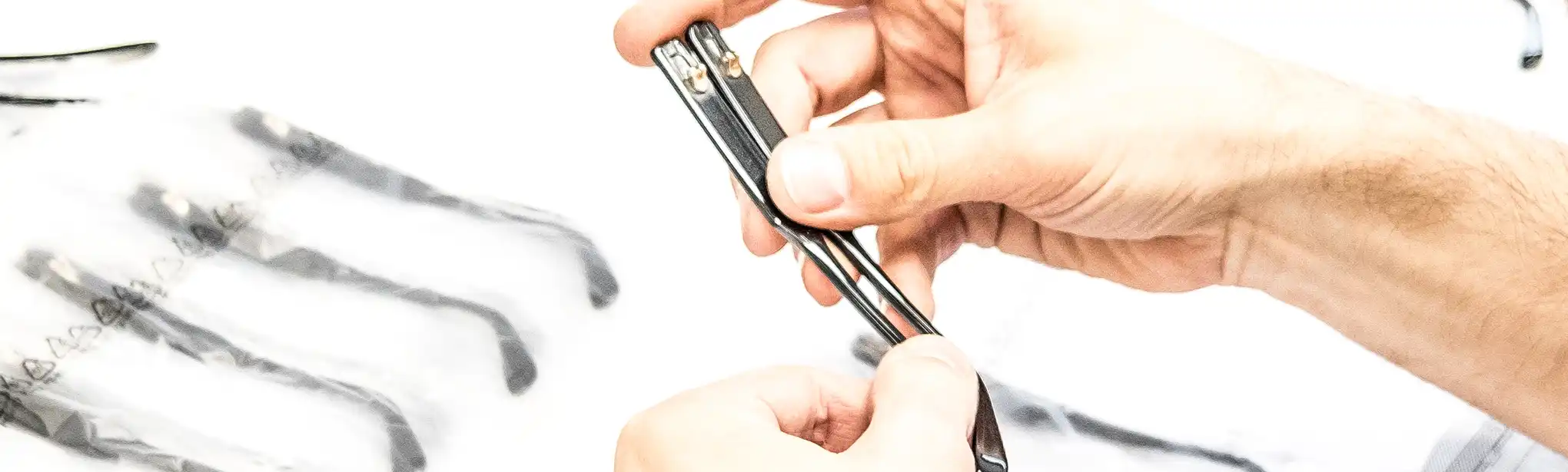 Die abschließende Phase bei der Brillenherstellung ist die Endbearbeitung. Im Zusammenspiel von menschlicher Handwerkskunst und dem Einsatz von Hightech-Maschinen entstehen die besonderen Eigenschaften eines jeden Modells. In akribischer Arbeit werden Details hinzugefügt, Silhouetten und Gestelle erhalten den letzten Schliff.