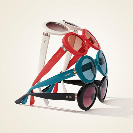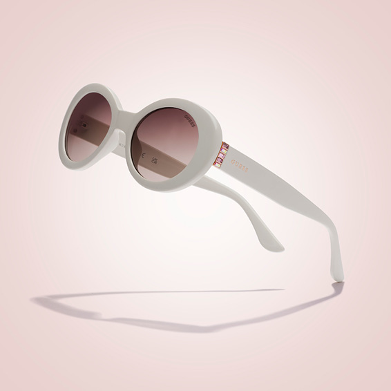 A feminine style with a geometric silhouette. The acetate frame comes in brilliant and iridescent colors to reflect a young, vibrant personality. The GUESS logo decorates the temples with subtle sensuality.