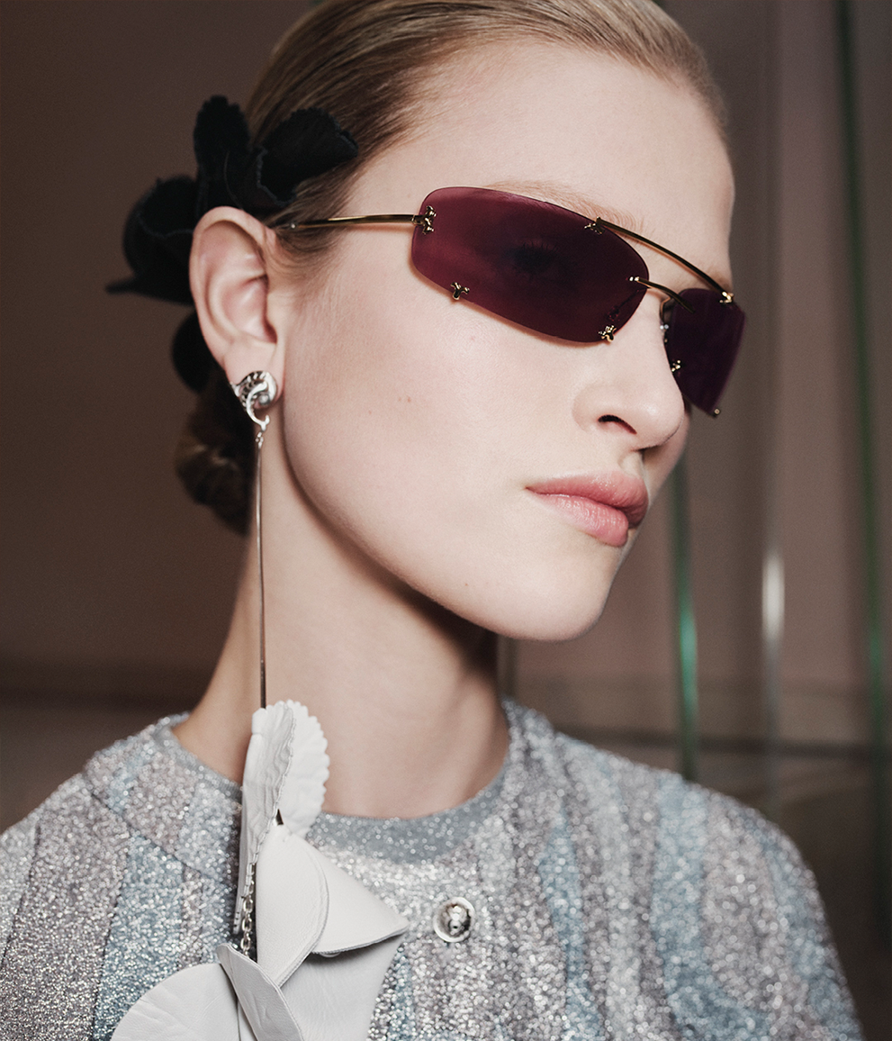 Pucci presenta una nuova collezione Eyewear coniugando una classica visione dell’eleganza e della vitalità con una rinnovata creatività. Le montature si distinguono grazie ad un’esplosione di colori, stampe giocose e dettagli dal carattere solare. Occhiali da sole e da vista si vestono di motivi iconici dell’archivio Pucci, tra cui la celebre stampa Iride, reinterpretata con un dinamismo cromatico che evoca la luce e il movimento dello sguardo. Viene inoltre introdotta la nuova stampa Marmo, che con le sue variazioni multicolore applicate su sofisticate montature in metallo, dà vita a combinazioni visive sorprendenti. Effetti cromatici tono su tono, ricercate fresature che scolpiscono i profili e l'inedito pattern zebra Havana arricchiscono le montature della collezione con un twist audace e sofisticato. Il design dei modelli esalta la femminilità attraverso forme scolpite, lavorazioni accurate e una costante ricerca stilistica. La silhouette diventa più arrotondata e delicata attraverso nuove montature ovali piccole e sottili, mentre il concetto puffy – che richiama volumi pieni e morbidezza – viene ripreso per enfatizzare le linee e la personalità dei modelli più audaci. Il motivo fishtail, filo conduttore dell’identità del brand, viene declinato in chiave estetica e funzionale animando il frontale e le aste con una struttura simmetrica. Insieme al logo dei due pesci intrecciati, elegantemente integrato nelle cerniere, definisce l'identità distintiva dell'intera collezione.